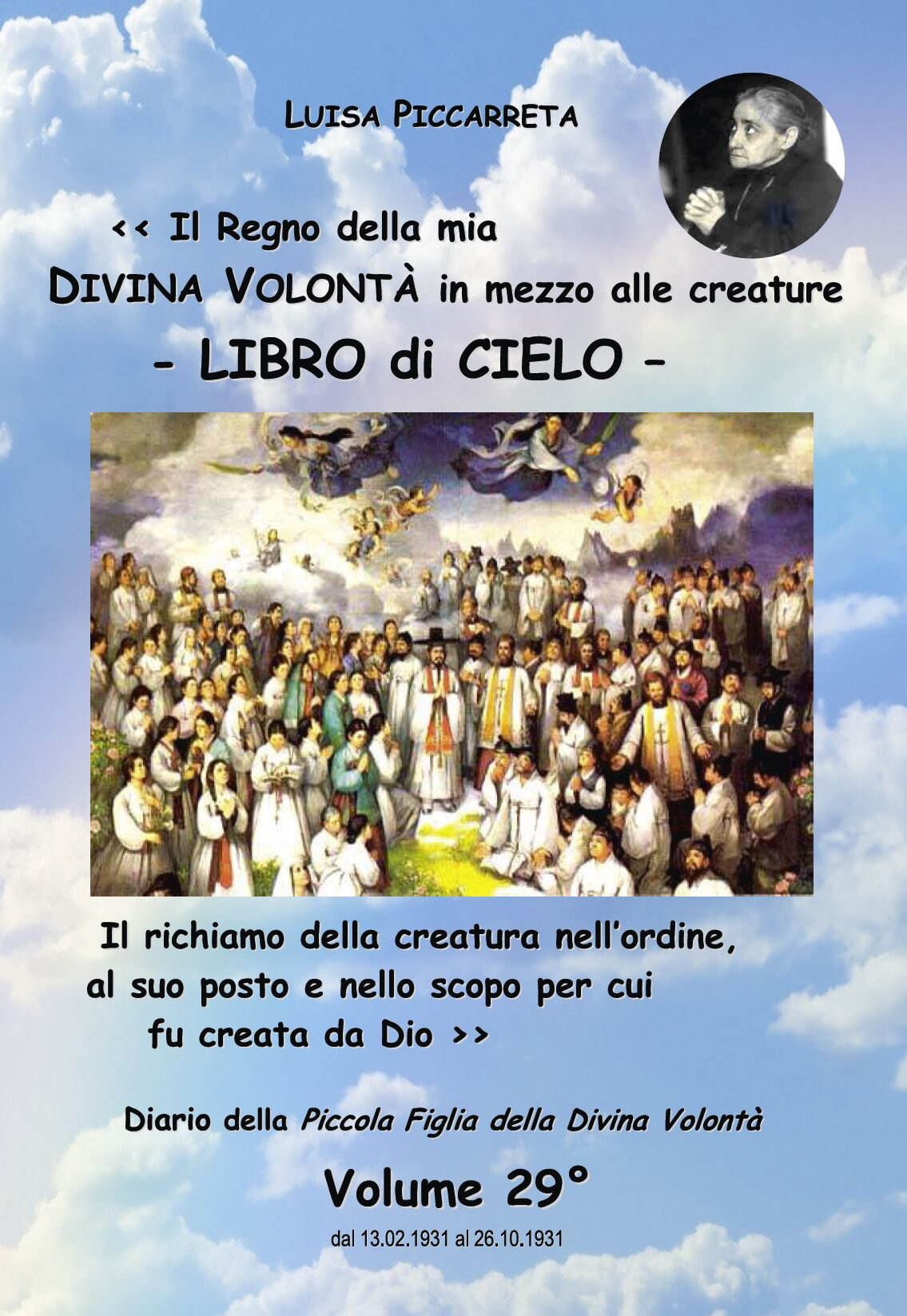 RACCOLTA PARZIALE: Libro di Cielo, Libri di Preghiera e Approfondimento parziale135,00 € Le Ore della Passione di Gesù (A5) Gesù desidera che almeno un’anima per ogni città si unisca a Lui nella Sua Divina Volontà per partecipare alle Sue ultime 24 ore sulla terra. Le Ore della Passione di Gesù di Luisa Piccarreta è un invito a condividere con Cristo i frutti della Sua Passione, morte e Risurrezione. Questo libro offre un percorso di preghiera meditazione profonda che ti permette di vivere in comunione con il Salvatore e di abbracciare l'amore infinito della Sua redenzione. Un dono spirituale per chi vuole avvicinarsi al cuore di Dio. La Vergine Maria - Il libro d'Oro (A5) La Vergine Maria, la prima creatura che, dopo il peccato originale, ha vissuto sempre la Vita Divina “Come in Cielo così in terra”. Nel Libro d'Oro scopri come il Padre Celeste ha affidato a Maria il mandato di insegnare questa Vita Divina a tutte le anime. Un'opera ricca di spiritualità e insegnamenti profondi per chi desidera seguire il cammino della Divina Volontà attraverso gli occhi e il cuore della Madre di Dio. Voglio Vivere nel Tuo Divino Volere (A5) Un viaggio spirituale unico: Voglio Vivere nel Tuo Divino Volere contiene: il “Pio Pellegrinaggio dell’anima nell’Operato della Divina Volontà”; la “Novena del Santo Natale”, la prima preghiera scritta da Luisa Piccarreta. Questo libro è un prezioso compagno per chi desidera approfondire la vita nella Divina Volontà e vivere in comunione con il disegno d’amore di Dio. Un’opera che ispira e guida verso una fede più profonda e autentica. Libro di Cielo - Volume 1 “Il Regno della mia Divina Volontà in mezzo alle creature. Il richiamo della creatura nell’ordine, al suo posto e nello scopo per cui fu creata da Dio.” Il primo volume della raccolta degli scritti di Luisa Piccarreta introduce alla conoscenza e alla meditazione della Divina Volontà. Questo volume rappresenta il punto di partenza per comprendere il cammino spirituale proposto dalla mistica di Corato, con contenuti che invitano a vivere in piena comunione con Dio attraverso l’abbandono totale alla Sua Volontà. Perfetto per chi desidera iniziare il percorso alla scoperta di un rapporto più intimo e profondo con il divino, il Volume 1 offre riflessioni e insegnamenti per avvicinarsi a una vita di fede autentica e trasformare l’ordinario in straordinario. Libro di Cielo - Volume 2 / 3 “Per ordine del confessore incomincio a scrivere ciò che passa tra me e Nostro Signore giorno per giorno.” I volumi 2 e 3 approfondiscono temi centrali come l’importanza della preghiera, l’abbandono fiducioso e la trasformazione interiore che deriva dal vivere secondo la Volontà di Dio. Con parole semplici ma cariche di significato, questa opera è un prezioso strumento per chi desidera avanzare nel cammino spirituale iniziato con il primo volume. Un viaggio unico nella spiritualità cristiana e nella chiamata a vivere nell’ordine divino. Libro di Cielo - Volume 4 Continua a venire il mio dolcissimo Gesù. Questa mattina, appena venuto ha voluto versare un poco le sue amarezze in me, e poi mi ha detto: “Figlia mia, io voglio dormire un poco, e tu fa il mio uffizio di soffrire, pregare e placare la giustizia”. Il quarto volume degli scritti di Luisa Piccarreta prosegue il percorso di approfondimento della Divina Volontà, guidando il lettore verso una maggiore comprensione della vita spirituale incentrata sull’unione con Dio. In questo volume, Luisa condivide esperienze mistiche e rivelazioni che illuminano il significato della vita vissuta in totale abbandono alla Volontà Divina. Con riflessioni profonde e insegnamenti ispirati, il Volume 4 diventa una guida essenziale per chi desidera continuare il cammino spirituale iniziato nei volumi precedenti. Libro di Cielo - Volume 5 / 6 / 7 “Questa mattina, dopo aver passato giorni amarissimi, il benedetto Gesù è venuto e si tratteneva con me familiarmente, tanto che io credevo di doverlo possedere sempre; ma quando al meglio, come un lampo è scomparso.” Nei volumi 5-6-7, Luisa continua a esplorare i temi della preghiera e della vita in unione con Dio, offrendo ai lettori i racconti delle sue visioni e riflessioni pratiche per applicare gli insegnamenti spirituali nella vita quotidiana. Ogni pagina è un invito a crescere nella fede e a sperimentare una trasformazione interiore attraverso l’abbandono totale alla Volontà Divina. Libro di Cielo - Volumi 8 / 9 / 10 Solo Dio può infondere pace nell’anima. Questa raccolta riunisce i volumi 8, 9 e 10 del Libro di Cileo. Attraverso queste pagine, Luisa condivide nuove rivelazioni e insegnamenti che illuminano la vita spirituale e il rapporto tra l’anima e Dio. I temi centrali includono l’amore infinito di Dio per l’umanità, la necessità di vivere in totale armonia con la Sua Volontà e la trasformazione spirituale che ne deriva. I volumi 8, 9 e 10 sono una guida preziosa per chi desidera proseguire il percorso spirituale con una maggiore comprensione e applicazione pratica degli insegnamenti di Luisa. Libro di Cielo - Volume 11 Continuando il mio solito stato, il mio adorabile Gesù Si faceva vedere Crocifisso con un’anima vicina, la quale si offriva vittima a Gesù; e Gesù le ha detto: “Figlia mia, ti accetto vittima del dolore. Tutto ciò che potrai soffrire, lo soffrirai come se stessi con Me sulla croce, e con le tue sofferenze Mi solleverai” Il volume 11 del Libro di Cielo rappresenta una tappa fondamentale nel cammino spirituale proposto da Luisa Piccarreta. Attraverso queste pagine, l'autrice continua a esplorare il mistero della Divina Volontà, rivelando profondi insegnamenti e nuove visioni che ispirano una vita in perfetta armonia con Dio. Il volume si concentra sull'importanza dell'amore totale e incondizionato verso il Creatore, incoraggiando i lettori a intraprendere un percorso di abbandono spirituale che conduce alla trasformazione in